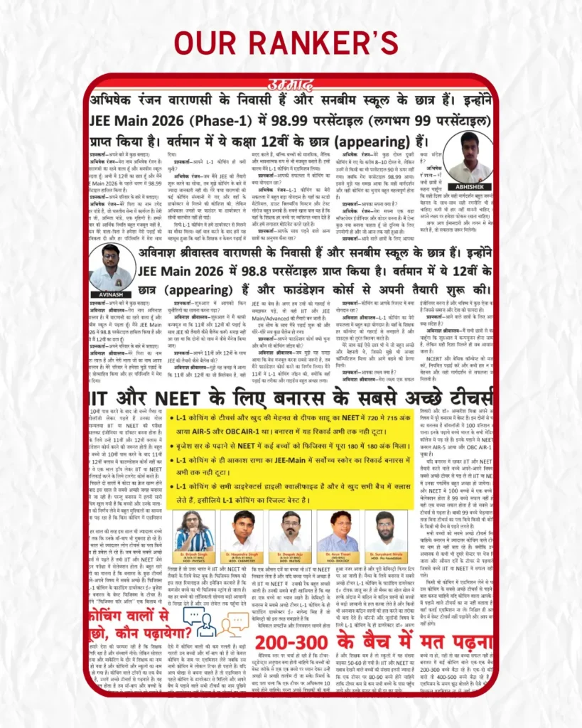 Read this : Jee Main 2026 success story L-1 Coaching Varanasi